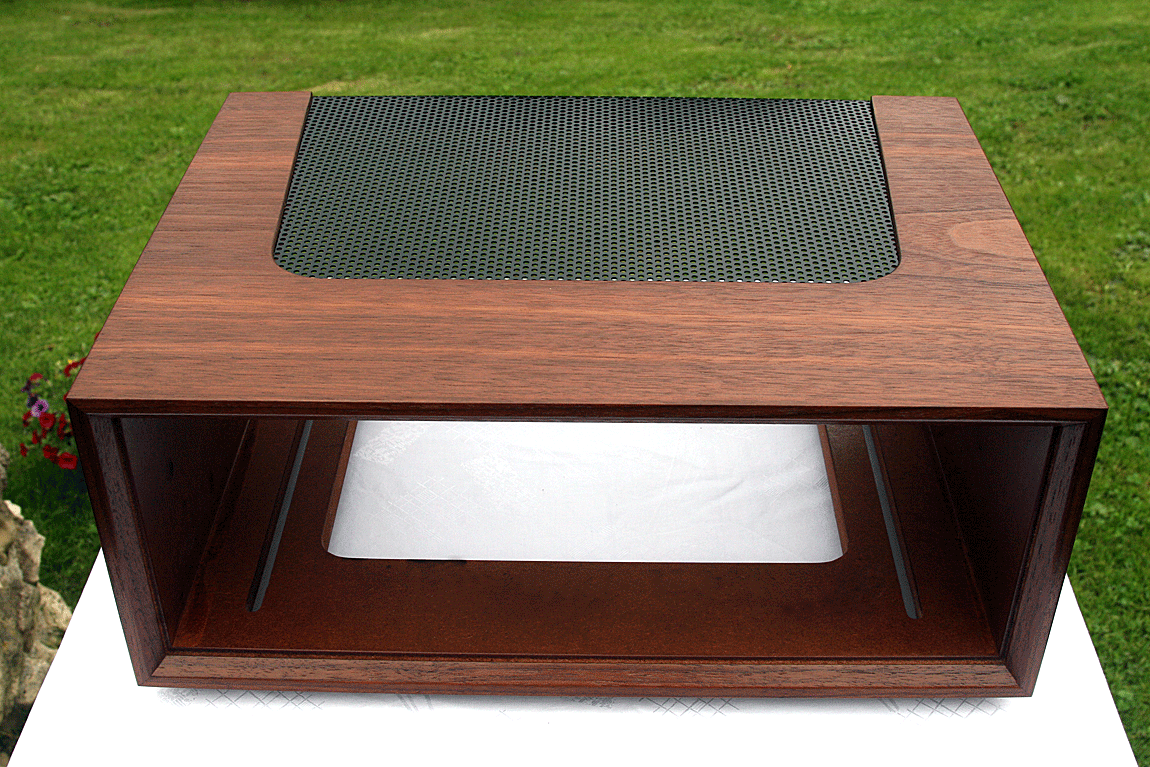 Aussenmaße Holzgehäuse: Breite 395mm, Höhe 165mm, Tiefe 290mm.