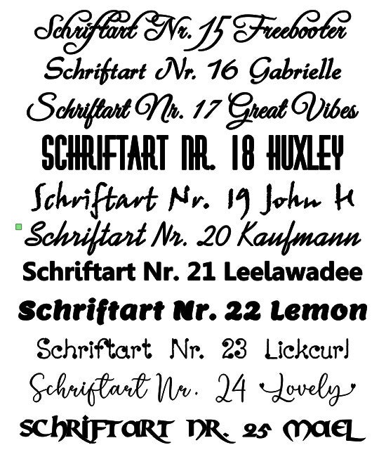 Teilen Sie uns auch hier die gewünschte Schriftart mit.